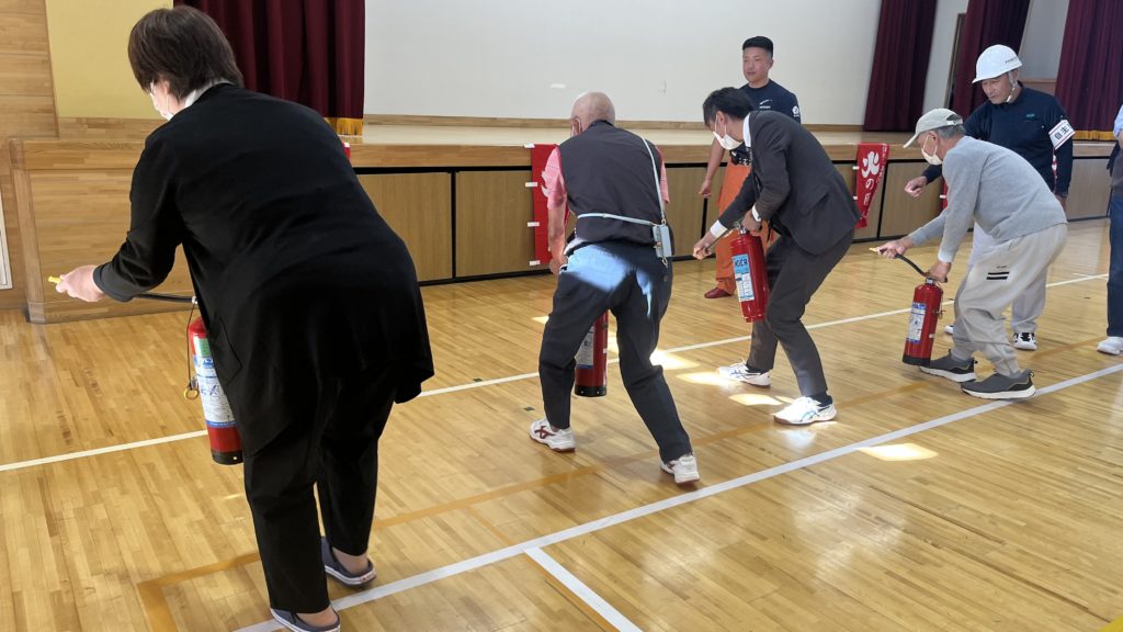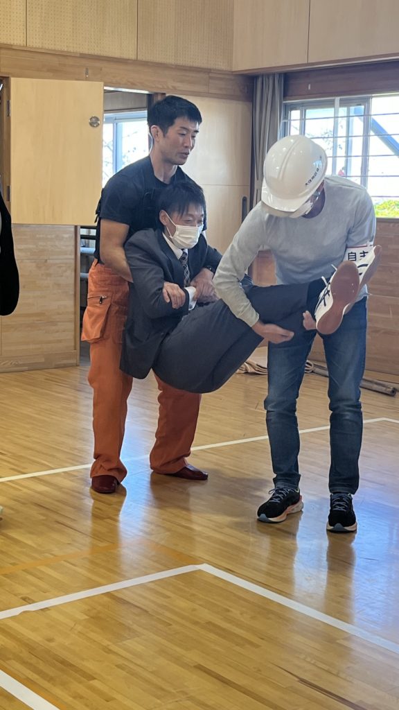 シェイクアウト訓練、消火器訓練、搬送訓練について消防や市役所の方からご指導をいただきました。